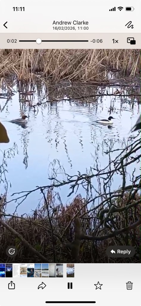 27 Feb – Sparrowhawk ; 2 x Buzzard ; Grey Heron ; 2 x Siskin ; Greenfinch ; 5 x Redwing ; 2 x Stock Dove ; Canada Goose ; 5 x Grey Lag Goose ; 6 x Black Headed Gull ; Chiffchaff ; Water Rail ; 2 x Goldcrest ; Collared Dove ; 30-40 Teal ;
