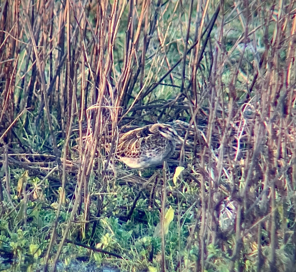 29 November – 140 Black Headed Gulls ; 1 x Common Gull ; 38 x Wigeon ; 27 x Teal ; Little Grebe ; 12 x Snipe ; 3 x Mistle Thrush ; Great Spotted Woodpecker ; Nuthatch ; Kestrel ; Buzzard ; Pied Wagtail ; 7 x Collared Dove ; Blue, Great + Long tailed Tits ; plenty of Blackbirds + Redwings ; Cetti’s Warbler ; 5 x Reed Bunting ; Jay ;