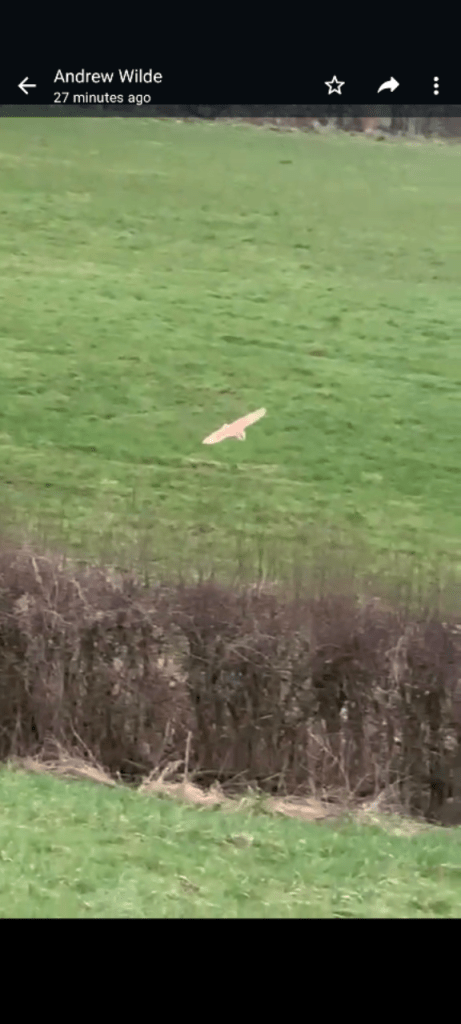 25 October – 17 x Teal ; 10 x Wigeon ; 26 x Lapwing ; Heron ; 2 x Kestrel ; 3 x Buzzard ; Goldcrest ; 12 x Goldfinch ; Bullfinch ; Chiffchaff ; Little Grebe ; 2 x Mistle thrush; 3 x Snipe ; Great Spotted Woodpecker ; Water Rail (possibly 2) ; Greenfinch (68) ; 17 x Redwing ; Meadow Pipit ; 11 x Pied Wagtail ; 2 x Grey wagtail ; Sparrowhawk ; Kingfisher ; Tawny Owl (69)